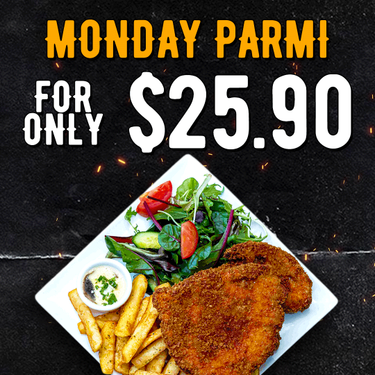 Aussie Parmigiana$31.90Golden Crumbed Chicken breast, Napoli, Virginian Ham, Cheese and Egg×